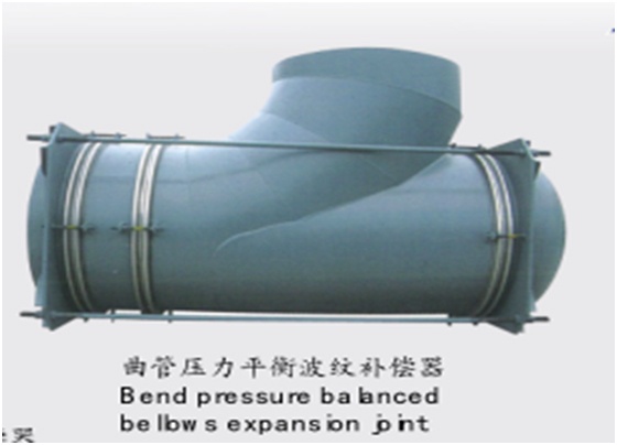 該類補(bǔ)償器是由兩個(gè)工作波紋管,一個(gè)平衡波紋管、端接管、中間接管、彎頭、封頭和端板及平衡推桿等裝置組成,其中平衡推桿在端板連接處帶有球面和錐面墊圈構(gòu)成滑動(dòng)體,動(dòng)全在補(bǔ)償器進(jìn)行橫向補(bǔ)償時(shí)自行調(diào)整。壓力平衡型補(bǔ)償器可以對(duì)彎曲管段產(chǎn)生的橫向位移通過工作波紋管補(bǔ)償吸收,工作波紋管同時(shí)補(bǔ)償吸收直管段內(nèi)的軸向位移并通過平衡波紋和被平衡,該補(bǔ)償器一般用于“T”型和“空間門”型管道的位移補(bǔ)償,軸向剛度值為工作波紋管與平衡波紋管之和,軸向剛度較大,因此彈反力較大,該型補(bǔ)償器能平衡介質(zhì)壓力推力。